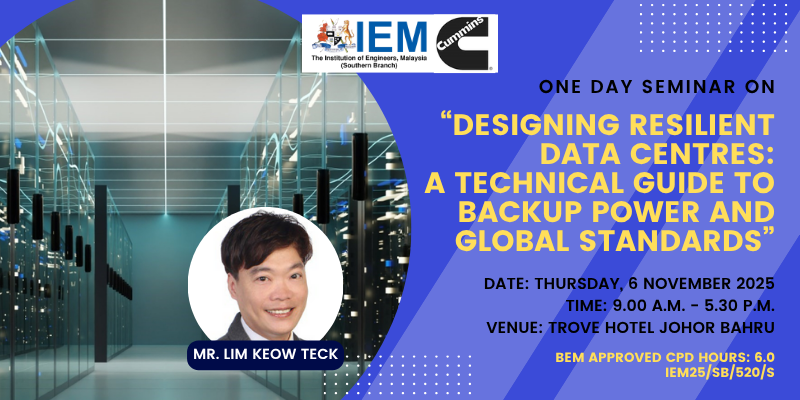 6 NOVEMBER 2025One-Day Seminar on “Designing Resilient Data Centres: A Technical Guide to Backup Power and Global Standards” READ MORE